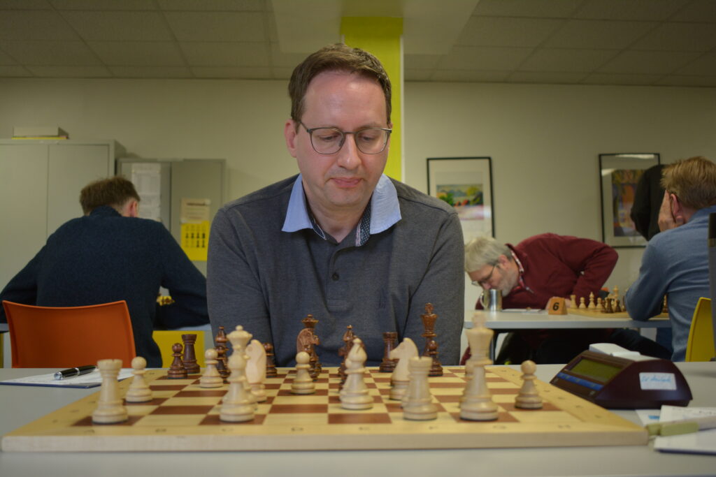 Florian am siebten Brett spielte gegen Bert Hollmann (DWZ 2105) und war der klare Underdog. Die Partie ging in die Verlängerung. Florian hielt mit Dame und Läufer lange stand gegen Dame und vier Bauern. Am Ende war seine Gegenwehr jedoch vergebens.