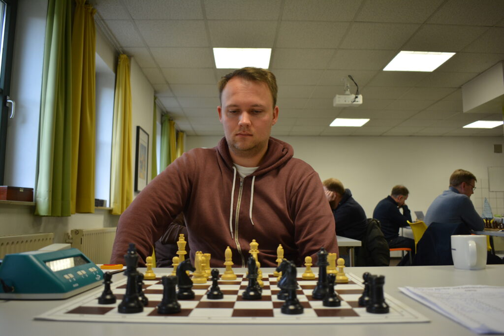 Mit meinem vollen Punkt am dritten Brett war nicht zu rechnen. Denn ersatzgeschwächt traten wir an ohne unsere drei Stammspieler Marko Suchland (Brett 3), Markus Henkemeier (Brett 4) und Florian Schwartz (Brett 7). Während die Gastgeber in Bestbesetzung an den Brettern saßen.
