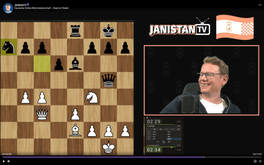 Der Schach-Bundestrainer Jan Gustafsson aus Hamburg ist Großmeister, ehemaliger Nationalspieler und ausgewiesener Eröffnungsexperte. Einst zählte er zum Sekundantenteam des Weltmeisters Magnus Carlsen. Seit 2020 betreibt er einen eigenen Streaming-Kanal auf der Plattform Twitch: JanistanTV.